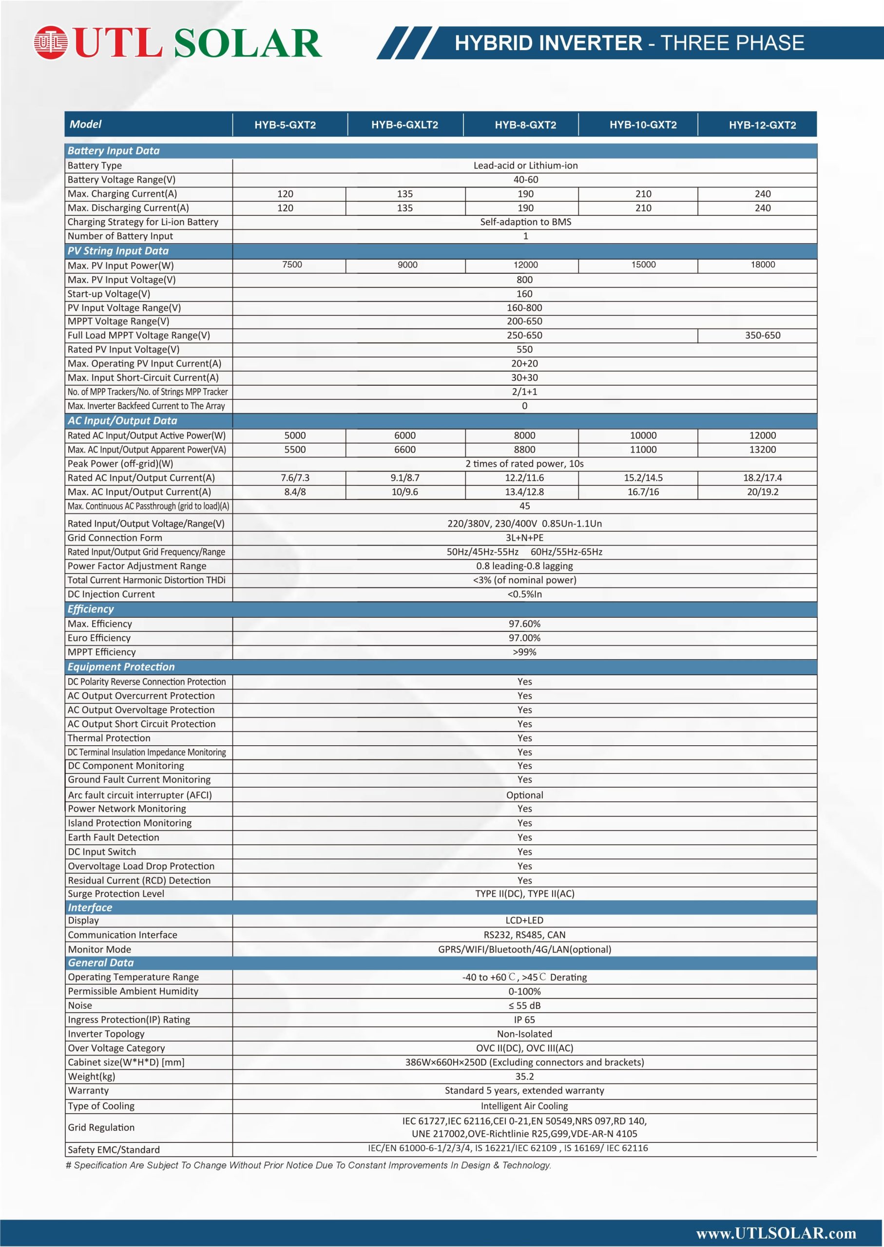 8 kVA High Frequency Solar Hybrid Inverter | HYB-8-GXLT2
